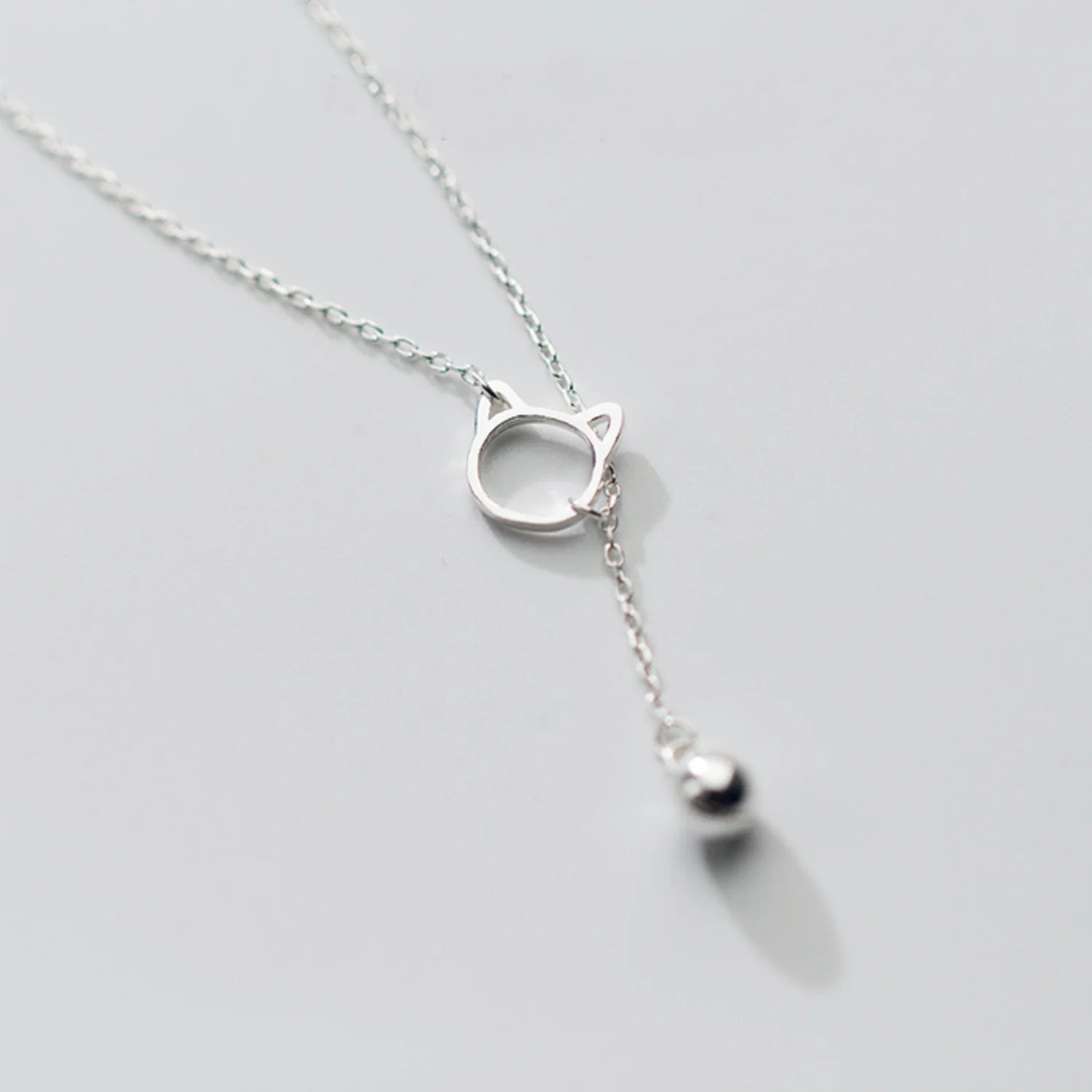 This **adorable cat necklace** features a charming kitty face with a delicate **bell charm**, making it the perfect accessory for cat lovers who appreciate feminine and stylish jewelry. Crafted from **Solid 925 Sterling Silver** and plated in **Platinum** for durability, shine, and a luxurious finish, this necklace is both elegant and long-lasting.